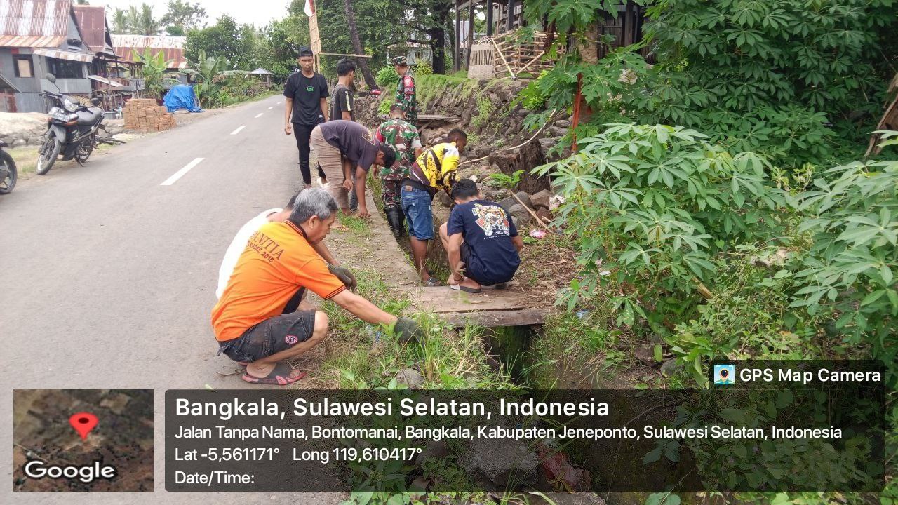 Dimana Babinsa Koramil 02/Bangkala Kodim 1425/Jeneponto bersama warga setempat bahu-membahu membersihkan saluran air yang mulai dipenuhi endapan lumpur dan sampah, sebagai antisipasi bencana saat musim hujan tiba.