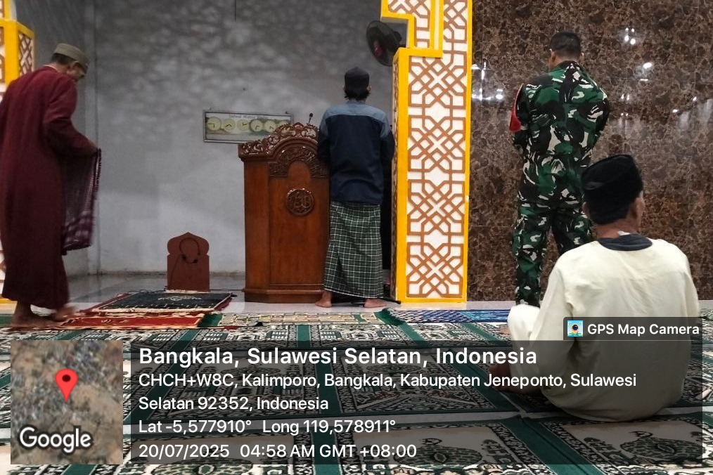 Jeneponto, Alefmedia.co.id – Dalam suasana hening pagi dan semangat ibadah yang khusyuk, Babinsa Koramil 02/Bangkala Kodim 1425/Jeneponto, Koptu Jumaris, menyatu bersama warga binaannya melaksanakan sholat Subuh berjamaah di Masjid Nurul Al-Amin, Dusun Pungkaribo, Desa Kalimporo, Kecamatan Bangkala, Kabupaten Jeneponto. Minggu, 20/07/2025.
