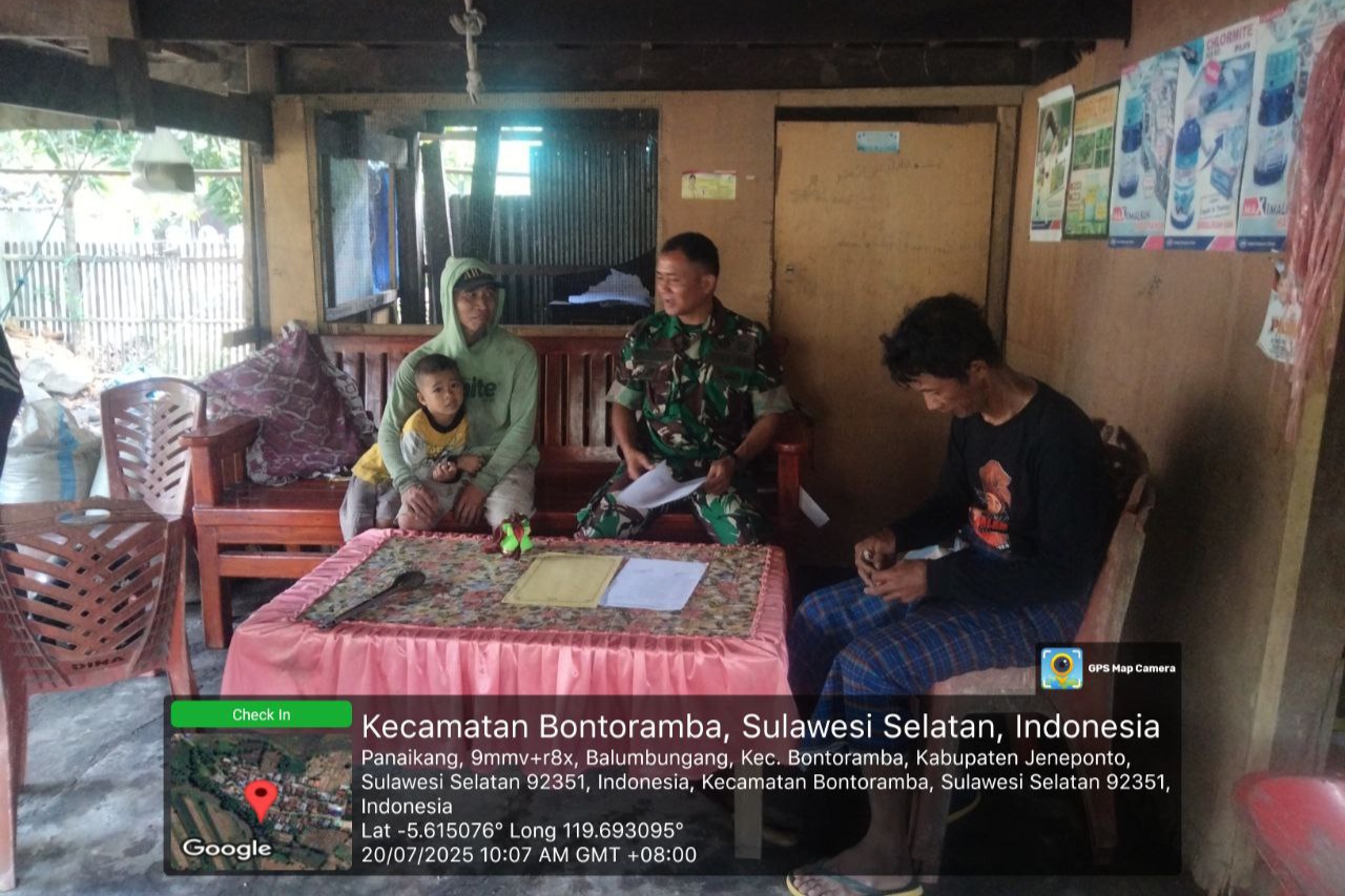 Di tengah kesibukan tugas, ia meluangkan waktu menyambangi rumah warga di Dusun Panaikang, Desa Balumbungang, Kecamatan Bontoramba, Minggu, 20/07/2025.