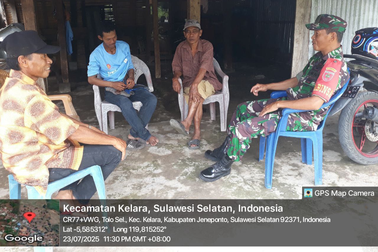 Jeneponto, Aliefmedia.co.id – Dengan semangat pengabdian tanpa batas, Babinsa Koramil 04/Kelara Kodim 1425/Jeneponto, Sertu Hamzah kembali turun langsung menyapa warga di lorong-lorong pemukiman padat penduduk.