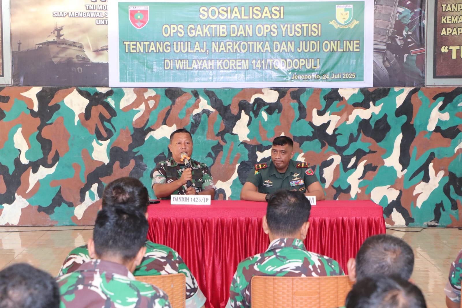 Jeneponto, Aliefmedia.co.id – Tidak semua perang terjadi di medan tempur. Ada pula yang harus dimenangkan di balik layar ponsel dan di jalan raya. Itulah pesan utama dalam sosialisasi yang digelar Subdenpom XIV/1-2 Bantaeng, Kamis, 24/07/2025, di Aula Vyati Kodim 1425/Jeneponto.