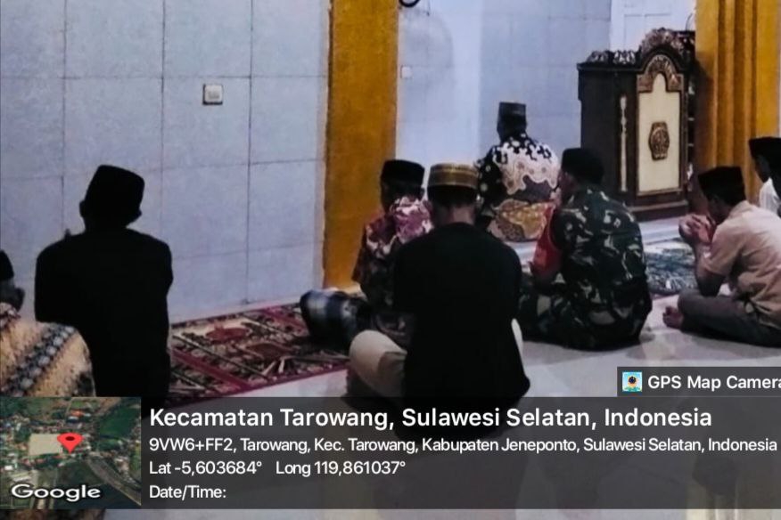 Jeneponto, Aliefmedia.co.id – Babinsa Koramil 05/Batag Kodim 1425/Jeneponto, Sertu Harianto melaksanakan sholat Subuh berjamaah bersama warga di Masjid Nurul Muttaqim Dusun Bungung Camba, Desa Tarowang, Kecamatan Tarowang, Kabupaten Jeneponto, wilayah binaanya, Sabtu, 26/07/2025.