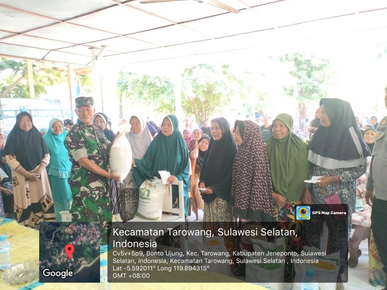 Jeneponto, Aliefmedia.co.id – Danramil 05/Batang Kodim 1425/Jeneponto, Lettu Inf Marzuki menghadiri kegiatan penyaluran bantuan pangan berupa beras kepada keluarga penerima manfaat (KPM) di wilayah Desa Bonto Ujung, Kecamatan Tarowang, Kabupaten Jeneponto, Senin, 28/07/2025.