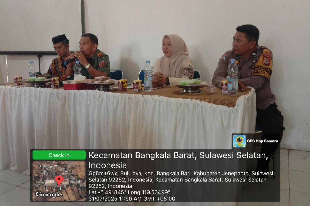 Jeneponto, Aliefmedia.co.id – Danpos Koramil Bangkala Barat Kodim 1425/Jeneponto, Peltu Subayir, didampingi Babinsa Sertu Arifuddin menghadiri kegiatan Lokakarya Mini Lintas Sektor yang digelar oleh UPT Puskesmas Barana. Kamis, 31/07/2025.
