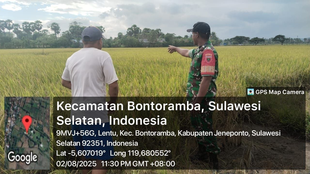 Jeneponto, Aliefmedia.co.id – Ditengah hangatnya mentari pagi, Babinsa Koramil 03/Tamalatea Kodim 1425/Jeneponto, Sertu Asrianto, menyusuri pematang sawah bersama para petani untuk meninjau tanaman padi yang sudah menguning dan siap dipanen.