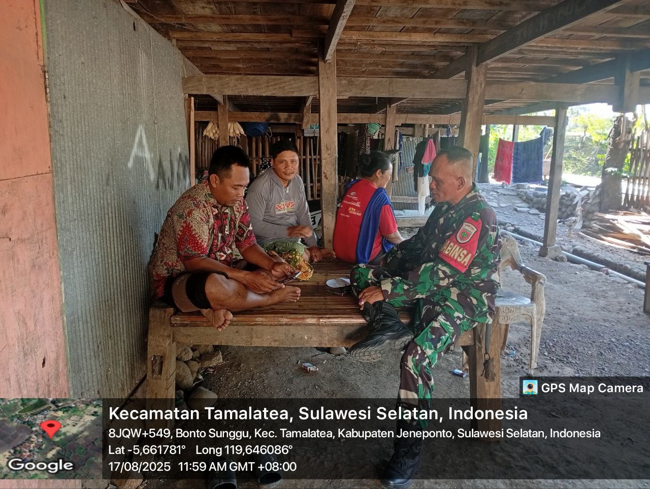 Jeneponto, Aliefmedia.co.id – Babinsa Koramil 03/Tamalatea Kodim 1425/Jeneponto, Serda Ramli, melaksanakan komunikasi sosial (komsos) dengan warga binaanya, bertempat di Desa Desa Bontosunggu, Kecamatan Tamalatea Kabupaten Jeneponto, Minggu 17/08/2025.