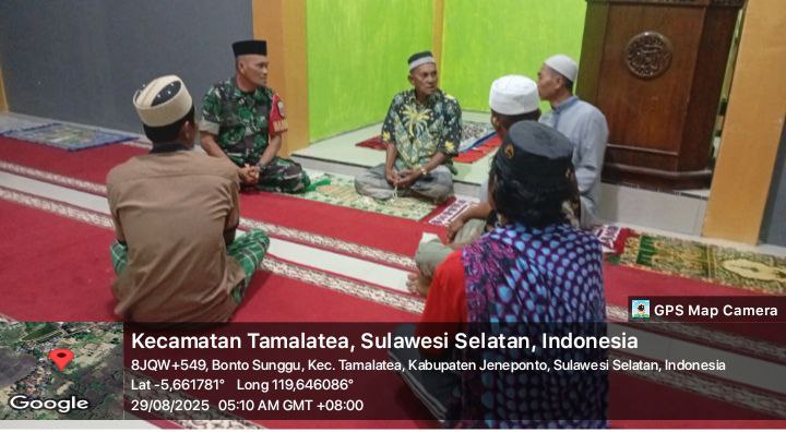 Jeneponto, Aliefmedia.co.id – Di tengah heningnya fajar, Babinsa Koramil 03/Tamalatea Kodim 1425/Jeneponto, Serda Ramli, memilih untuk memulai hari dengan langkah sederhana namun penuh makna, sholat Subuh berjamaah bersama masyarakat di Masjid Nurul Syafaat Desa Bontosunggu, Kecamatan Tamalatea, Kabupaten Jeneponto. Jum’at, 29/08/2025.