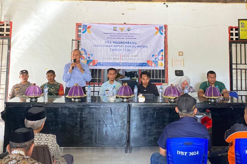 Jeneponto, Aliefmedia.co.id – Babinsa Koramil 05/Batang Kodim 1425/Jeneponto, Sertu Abdul Rahim menghadiri kegiatan Pra Musyawarah Perencanaan Pembangunan Desa (Pra Musrenbang) dalam rangka penyusunan Rencana Kerja Pemerintah Desa (RKPDES) dan Daftar Usulan Usulan (DUU) RKPDES tahun 2026. Kegiatan berlangsung di Kantor Desa Baltar, Kecamatan Tarowang, Kabupaten Jeneponto, pada Jum’at, 29/08/2025.