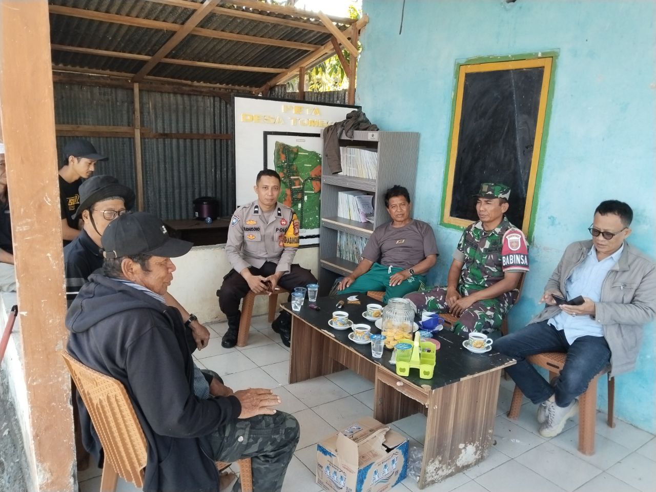 Dalam suasana penuh keakraban, Babinsa dan Bhabinkamtibmas berdialog dengan warga mengenai kondisi sosial kemasyarakatan di Tombolo, termasuk pentingnya menjaga lingkungan yang aman dan nyaman.