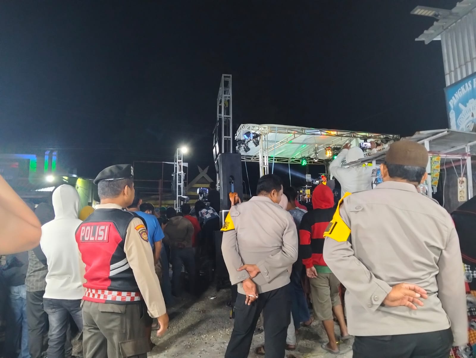 Selain berpatroli di jalur utama, personel juga melakukan pengamanan di lokasi keramaian, salah satunya di area pesta yang menampilkan hiburan musik orkes atau elekton.