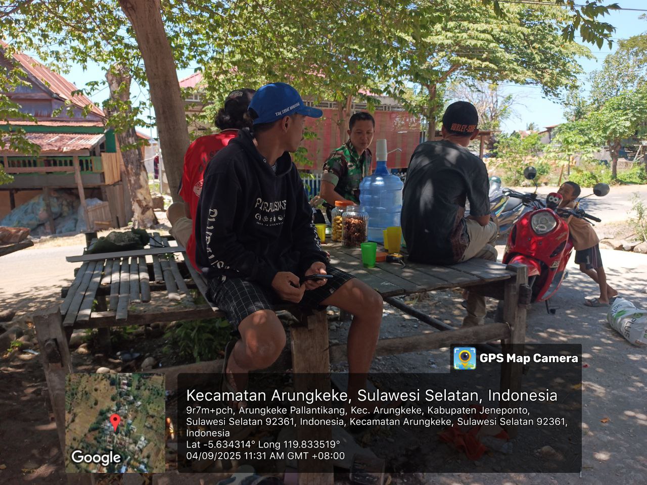 Jeneponto, Aliefmedia.co.id – Babinsa Koramil 05/Batang Kodim 1425/Jeneponto, Serda Amiruddin melaksanakan kegiatan komunikasi sosial (Komsos) dengan warga masyarakat binaannya di Desa Arpal, Kecamatan Arungkeke, Kabupaten Jeneponto. Kamis, 04/09/2025.