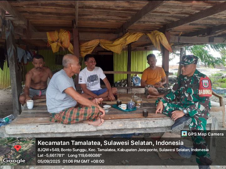 Jeneponto, Aliefmedia.co.id – Dalam rangka mempererat hubungan dengan masyarakat binaannya, Babinsa Koramil 03/Tamalatea Kodim 1425/Jeneponto, Serda Ramli, melaksanakan kegiatan komunikasi sosial (Komsos) bersama warga di Desa Bontosunggu, Kecamatan Tamalatea, Kabupaten Jeneponto. Jum’at, 05/09/2025.