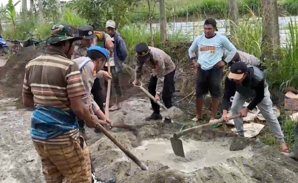Kegiatan tersebut difokuskan pada pengecoran jalan sepanjang kurang lebih 500 meter di Dusun Mangunturu yang selama ini mengalami kerusakan cukup parah.