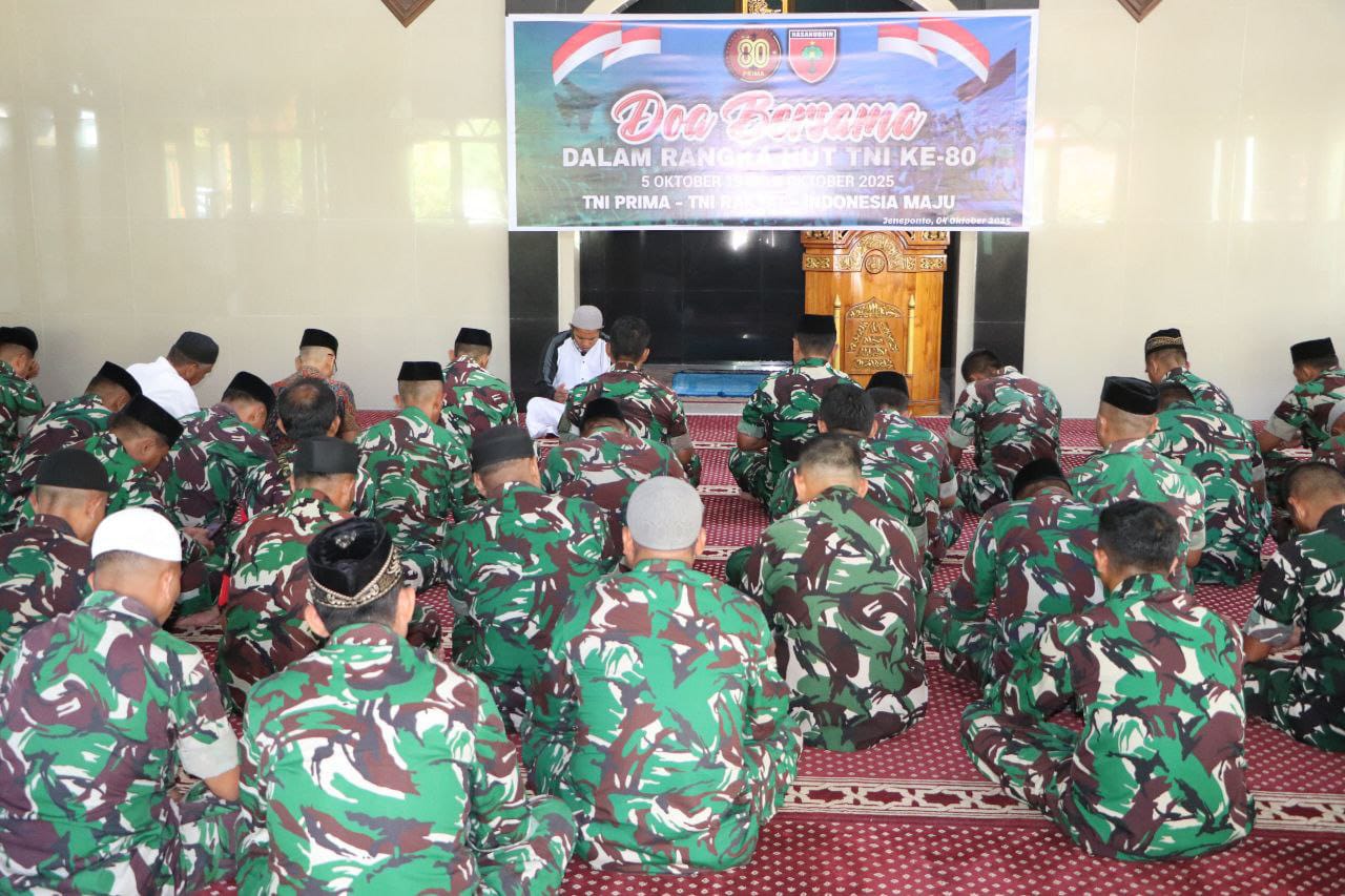 Kegiatan doa bersama yang digelar dalam rangka HUT ke-80 TNI ini berlangsung sederhana namun penuh makna, mengusung tema “TNI Prima, TNI Rakyat, Indonesia Maju”.