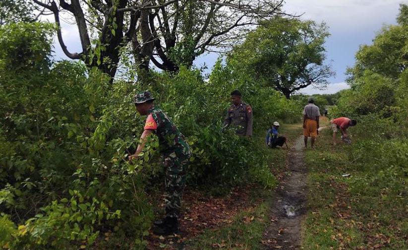 Jeneponto, Aliefmedia.co.id – Babinsa Koramil 02/Bangkala Kodim 1425/Jeneponto bersama Bhabinkamtibmas dan nelayan setempat melaksanakan gotong royong membersihkan jalan menuju kawasan Pantai, bertempat di Lingkungan Ujung Bori, Kelurahan Pantai Bahari, Kecamatan Bangkala, Kabupaten Jeneponto. Selasa, 07/10/2025.