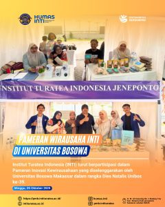 Aliefmedia.co.id, Makassar – Institut Turatea Indonesia (INTI) turut ambil bagian dalam Pameran Kewirausahaan yang diselenggarakan oleh Universitas Bosowa Makassar sebagai bagian dari rangkaian Dies Natalis Universitas Bosowa yang ke-39. Beberapa Minggu lalu