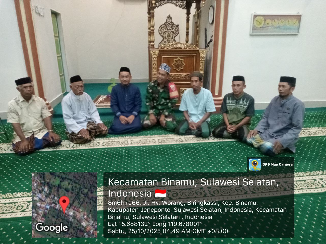 Usai melaksanakan sholat berjamaah, Babinsa berdialog ringan dengan tokoh agama dan masyarakat. Dalam suasana penuh keakraban, ia menyampaikan pesan agar seluruh warga terus menjaga persatuan, memperkuat nilai-nilai keagamaan, dan menumbuhkan semangat gotong royong sebagai dasar kehidupan bermasyarakat.