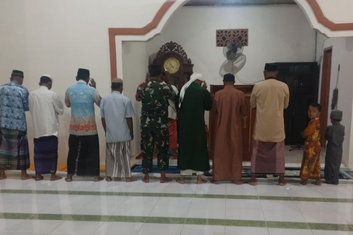 Usai menunaikan ibadah, Babinsa berbaur dengan masyarakat dan tokoh agama dalam suasana hangat dan penuh kekeluargaan.