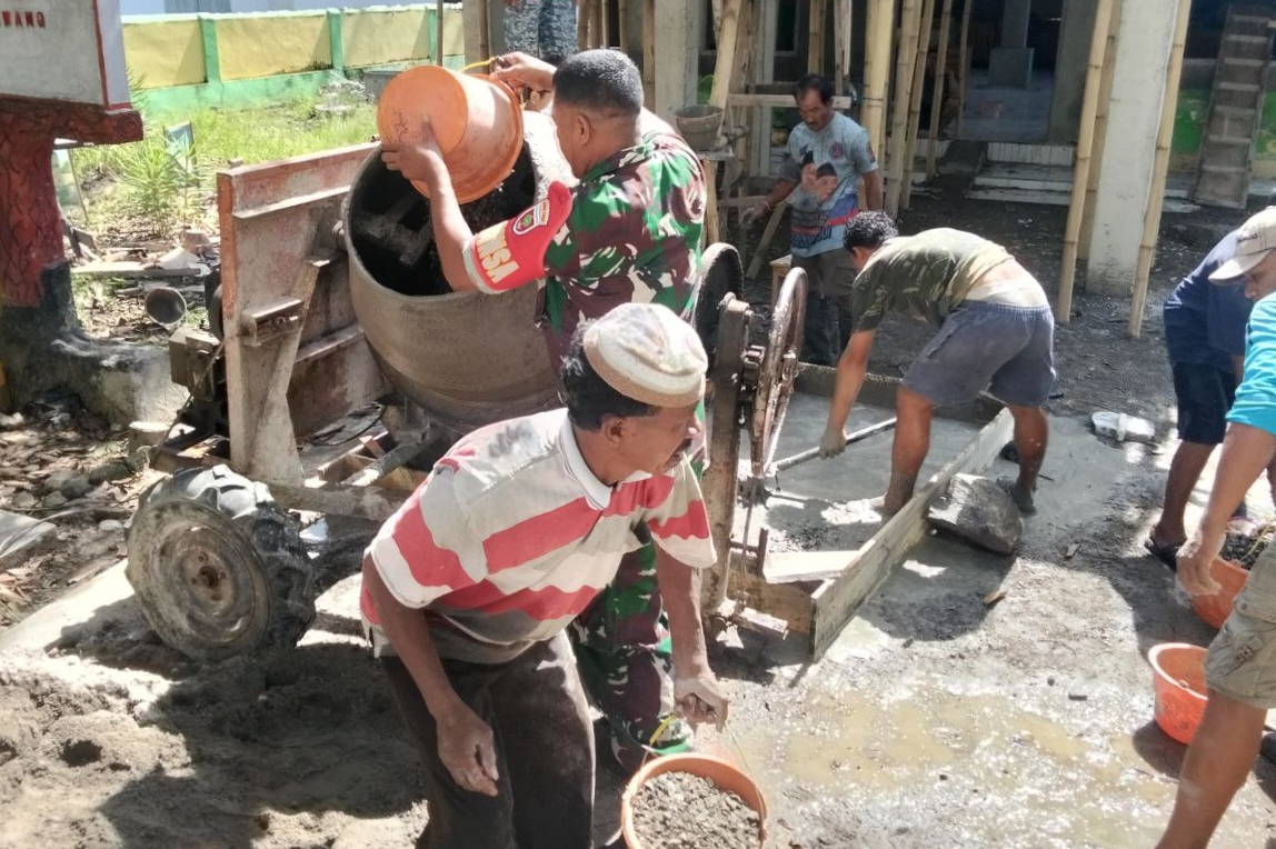 Jeneponto, Aliefmedia.co.id – Babinsa Koramil 05/Batang Kodim 1425/Jeneponto, Sertu Syamsuddin M, turut serta dalam kegiatan gotong royong pengecoran pembangunan Kantor Desa Tino, Kecamatan Tarowang, Kabupaten Jeneponto.