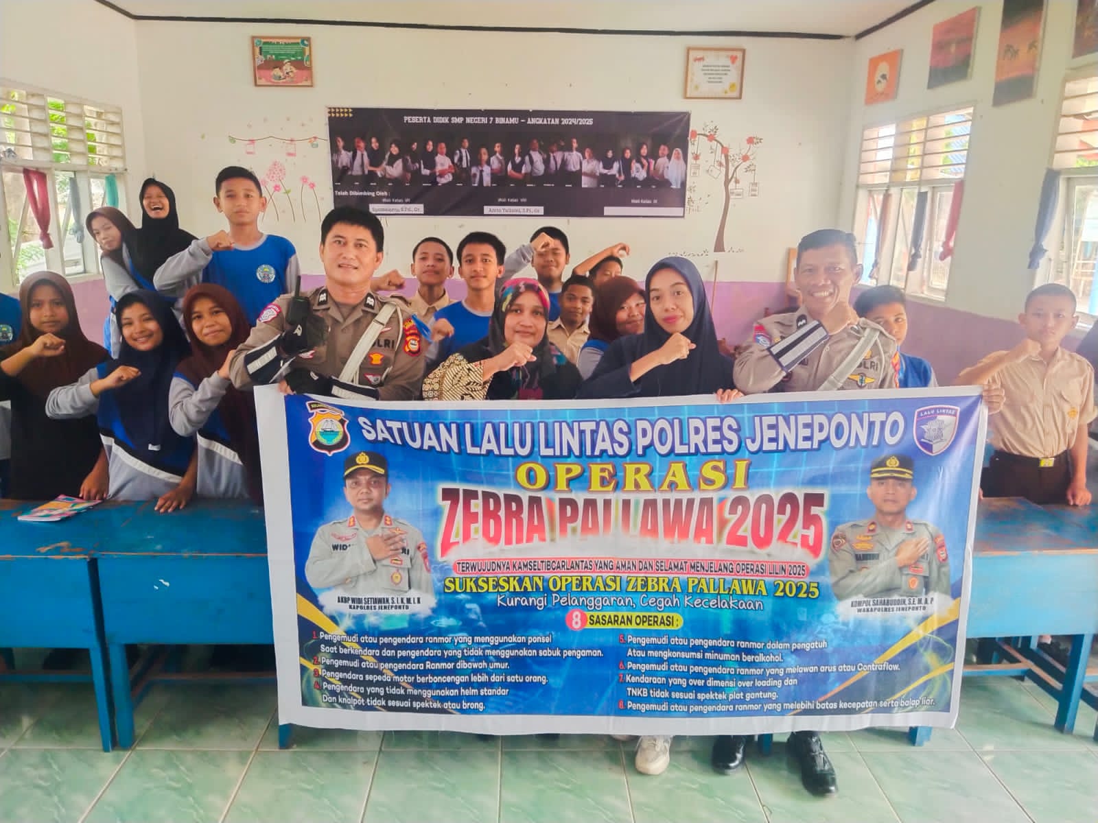 JENEPONTO – Dalam rangkaian Operasi Zebra Pallawa 2025 hari keenam, Satuan Lalu Lintas (Sat Lantas) Polres Jeneponto menghadirkan program “Polisi Goes to School”.