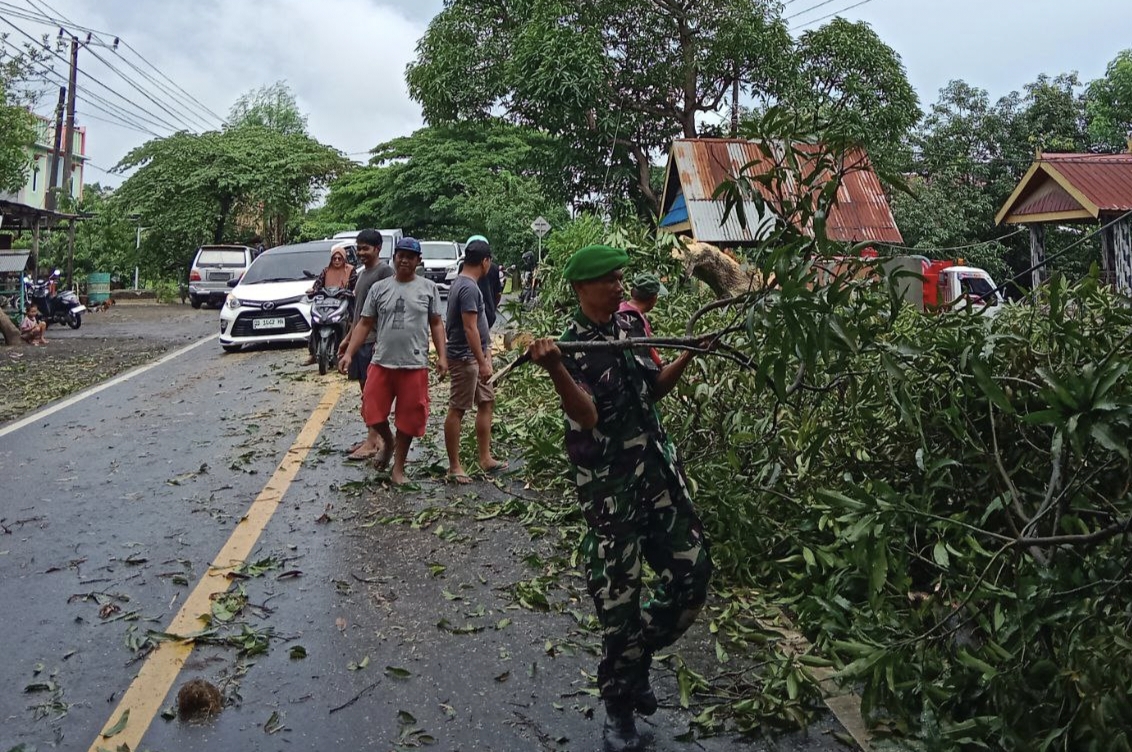 Tanpa menunggu lama, Sertu Lukman langsung mengoordinasikan warga untuk melakukan evakuasi cepat agar arus lalu lintas kembali normal. Aksi gotong royong pun berjalan spontan dan efektif, sehingga jalur utama tersebut dapat dibuka kembali dalam waktu singkat.