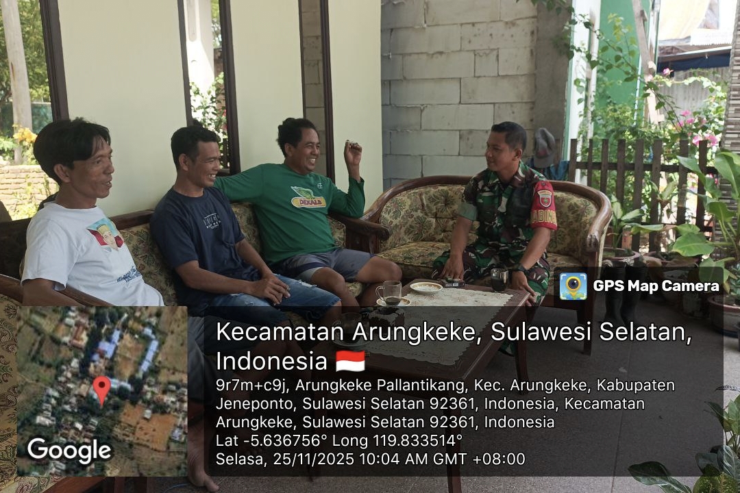 Jeneponto, Aliefmedia.co.id – Babinsa Kodim 1425/Jeneponto kembali melaksanakan kegiatan komunikasi sosial (Komsos) bersama masyarakat di wilayah binaan pada Selasa, 25/11/2025.