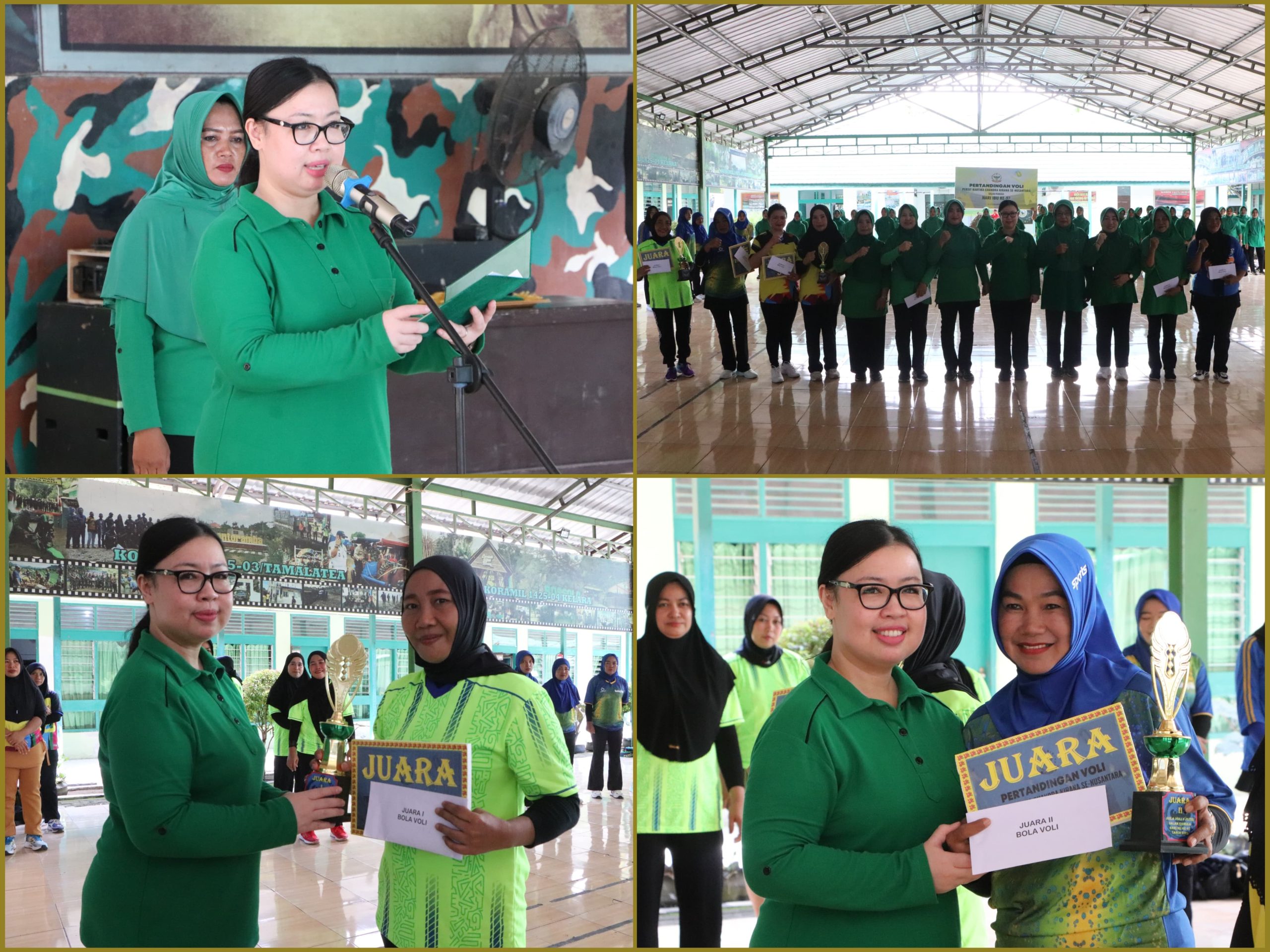 Jeneponto, Aliefmedia.co.id – Ketua Persit Kartika Chandra Kirana (KCK) Cabang XXXIII Dim 1425 Koorcab Rem 141 PD XIV/Hasanuddin, Ny. Devy Muthalib Tallasa, memimpin langsung upacara penutupan pertandingan bola voli dalam rangka peringatan Hari Ibu ke-97.
