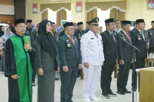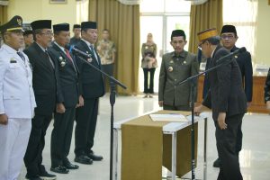 Pelantikan dilanjutkan dengan pengam bilan sumpah jabatan serta penandata nganan berita acara pelantikan oleh para pejabat yang dilantik.