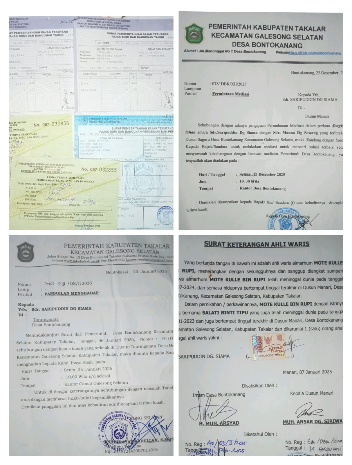Ironisnya, Pemerintah Desa Bontokanang justru memfasilitasi klaim tersebut. Melalui surat resmi Nomor 078/DBK/XII/2025 tertanggal 22 Desember 2025, Saripuddin dipanggil untuk dimediasi dalam perkara sengketa tanah yang dipimpin langsung Kepala Desa, didampingi bhabinkamtibmas dan babinsa.
