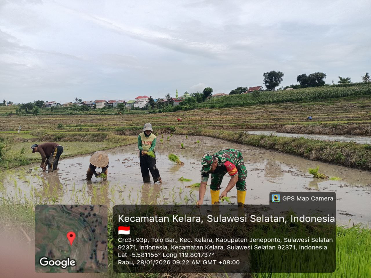 Serka Jamaluddin menyampaikan bahwa percepatan tanam padi penting dilakukan untuk menjaga kesinambungan produksi pertanian di wilayah Kelara. Ia menegaskan bahwa Babinsa berkomitmen untuk selalu hadir memberikan pendampingan dan motivasi kepada petani agar tetap produktif.