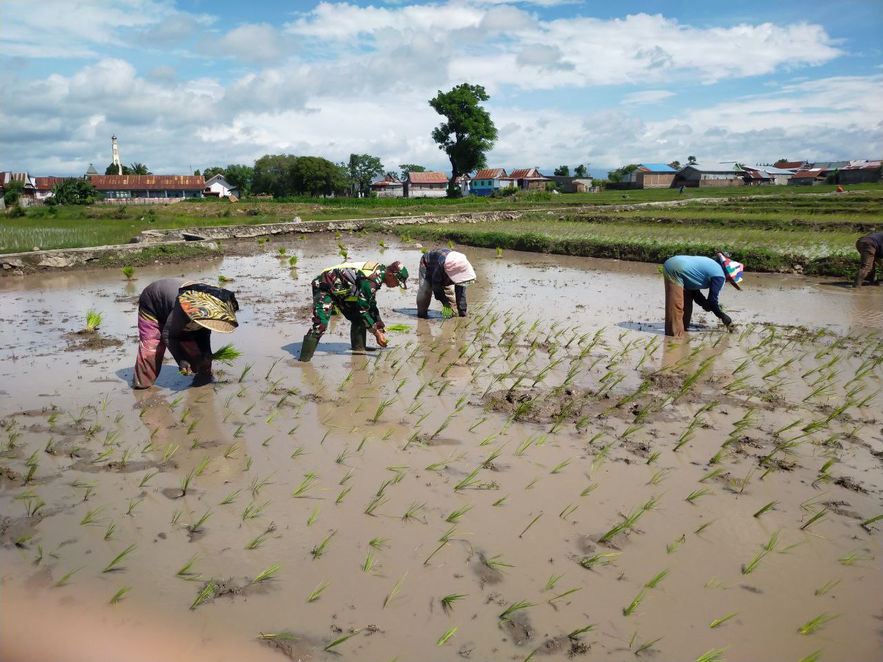“Pendampingan ini bukan sekadar membantu tanam padi, tetapi juga membangun kebersamaan dan memperkuat ketahanan pangan daerah sebagai bagian dari kepentingan nasional,” tegas Kapten Inf Sayuti.