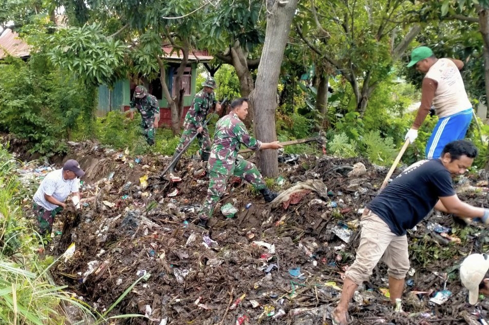 Kerja bakti dipimpin langsung oleh Danramil 1425-04/Kelara Kapten Inf Burhan, dengan sasaran pengangkutan sampah serta pembersihan saluran air yang tertutup endapan lumpur dan rumput liar.