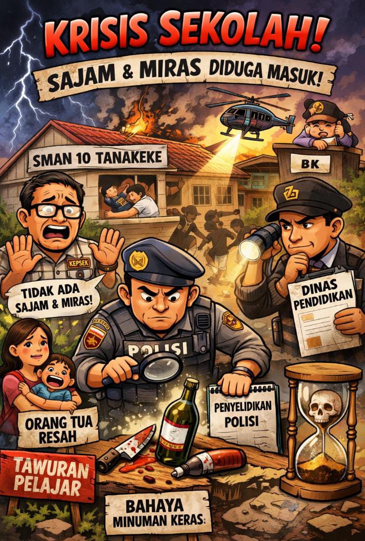 TAKALAR, Aliefmedia.co.id – Dunia pendidikan kembali diguncang. Perkelahian antar siswa di SMAN 10 Tanakeke pada Senin (09/02/2026) tidak lagi dipandang sekadar konflik remaja. Kasus ini berkembang menjadi sorotan serius setelah muncul dugaan bahwa minuman keras (miras) dan senjata tajam (sajam) bisa masuk ke lingkungan sekolah.