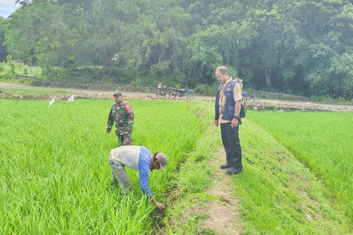 Pemantauan dilakukan dengan menyusuri pematang sawah, mengecek kondisi daun, anakan padi, serta memastikan sistem pengairan berjalan lancar.