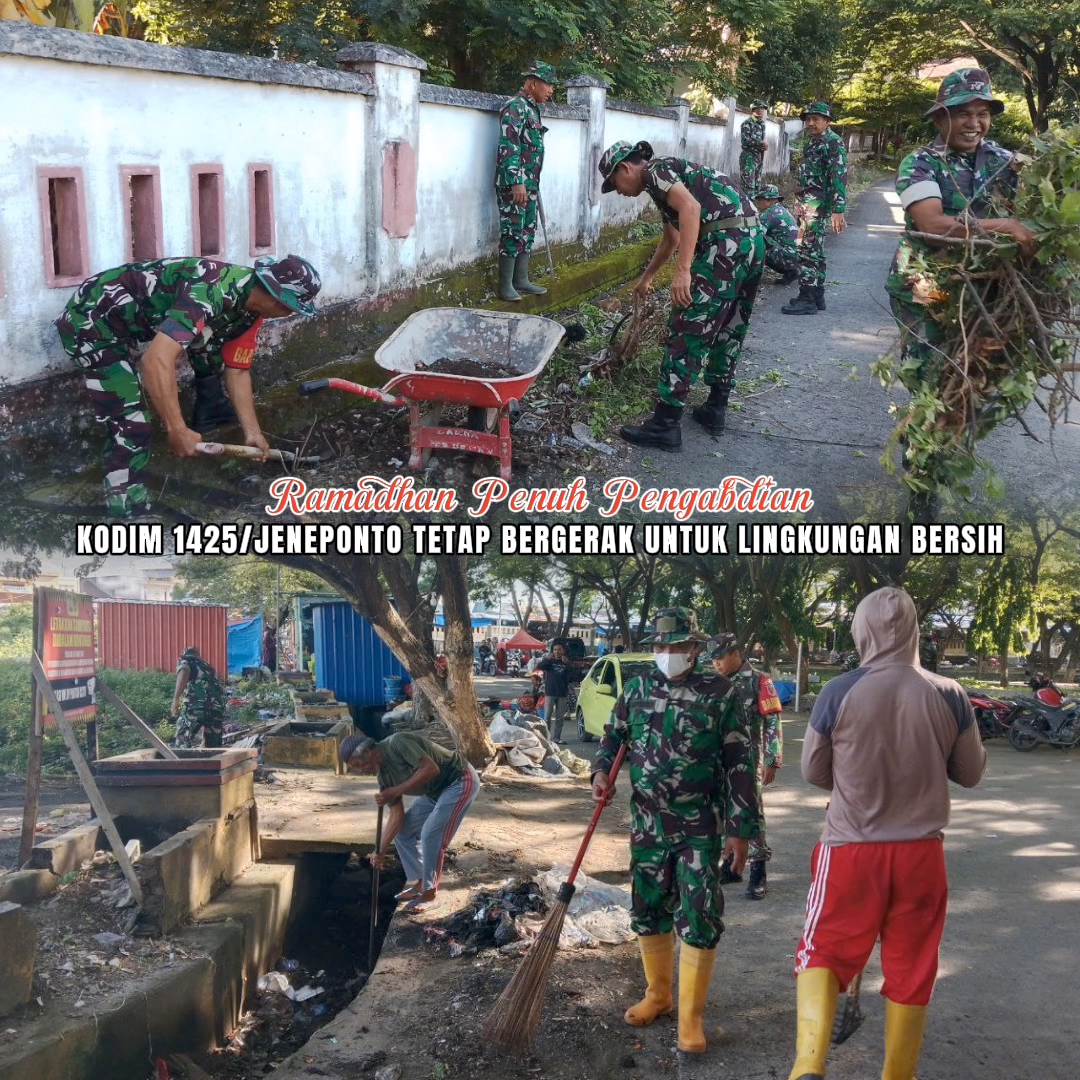 Jeneponto, Aliefmedia.co.id – Bulan suci Ramadhan tak menyurutkan semangat pengabdian prajurit Kodim 1425/Jeneponto dalam menjaga kebersihan dan kenyamanan wilayah binaan.
