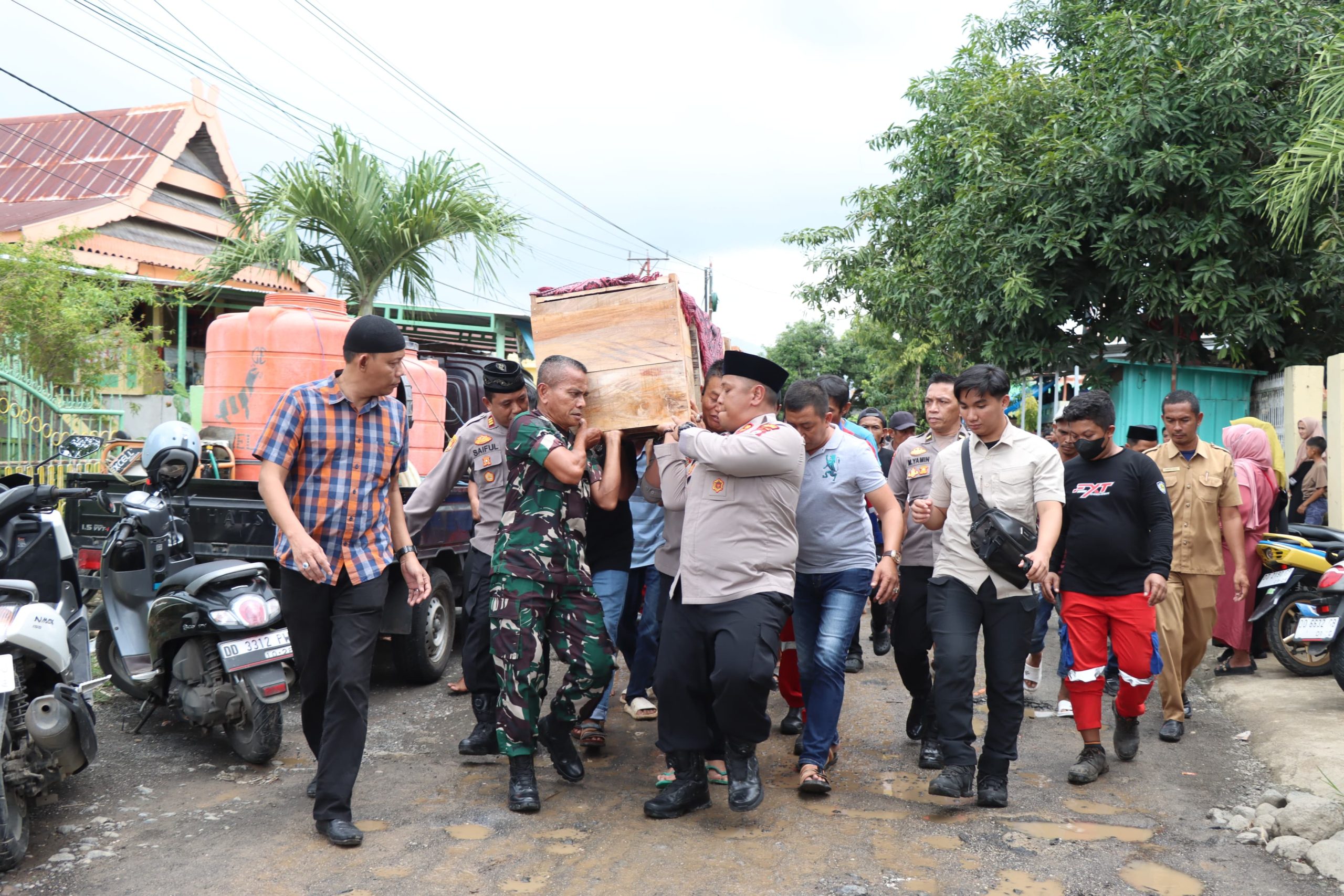 Tidak hanya sekadar melayat, Kasdim 1425/Jeneponto Mayor Inf Ramli Hamanja bersama Kapolres Jeneponto AKBP Haryo Basuki, S.I.K., M.H., turut serta mengusung keranda jenazah menuju tempat peristirahatan terakhir. Momen tersebut menjadi simbol kuat sinergitas TNI-Polri sekaligus bukti kedekatan aparat dengan masyarakat.