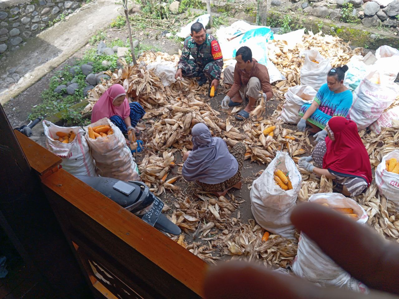 Kehadiran Babinsa di tengah aktivitas warga tersebut menjadi penyemangat tersendiri bagi para petani. Di sela kegiatan pemantauan wilayah, Sertu Suhafid R tidak segan ikut duduk bersama warga, membantu proses pengupasan jagung yang akan dikeringkan sebelum dipasarkan. Kebersamaan itu mencerminkan kemanunggalan TNI dengan rakyat yang terus terjaga.