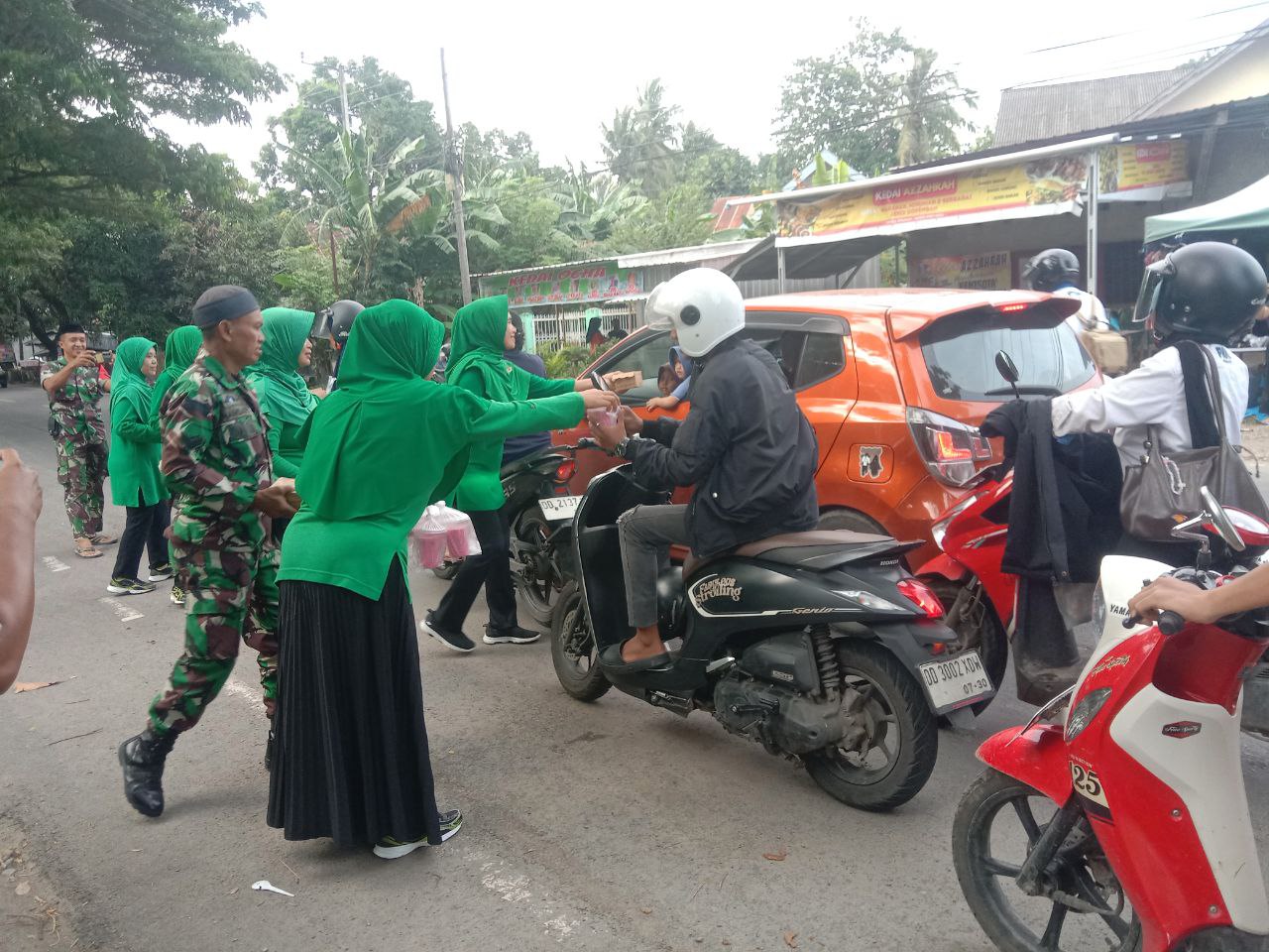 Menjelang waktu berbuka puasa, para prajurit bersama Persit tampak sigap menyapa dan membagikan paket takjil kepada para pengguna jalan serta warga sekitar.
