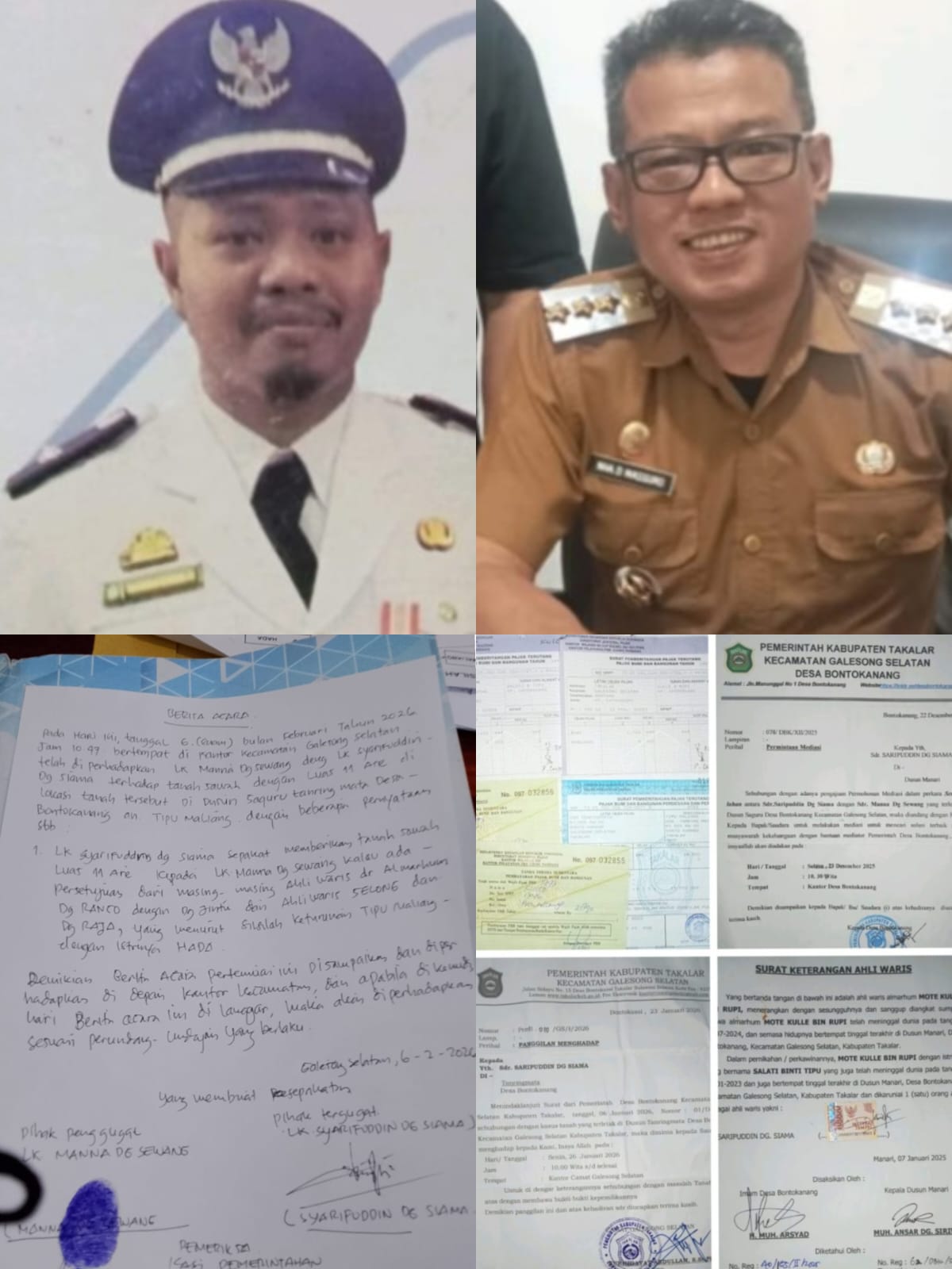 Takalar, Aliefmedia.co.id — Sengketa tanah warisan di Dusun Tenring mata, Desa Bontokanang, Kecamatan Galesong Selatan, Kabupaten Takalar, Sulawesi Selatan, kini berubah menjadi sorotan serius terhadap kinerja aparatur pemerintah desa dan kecamatan.