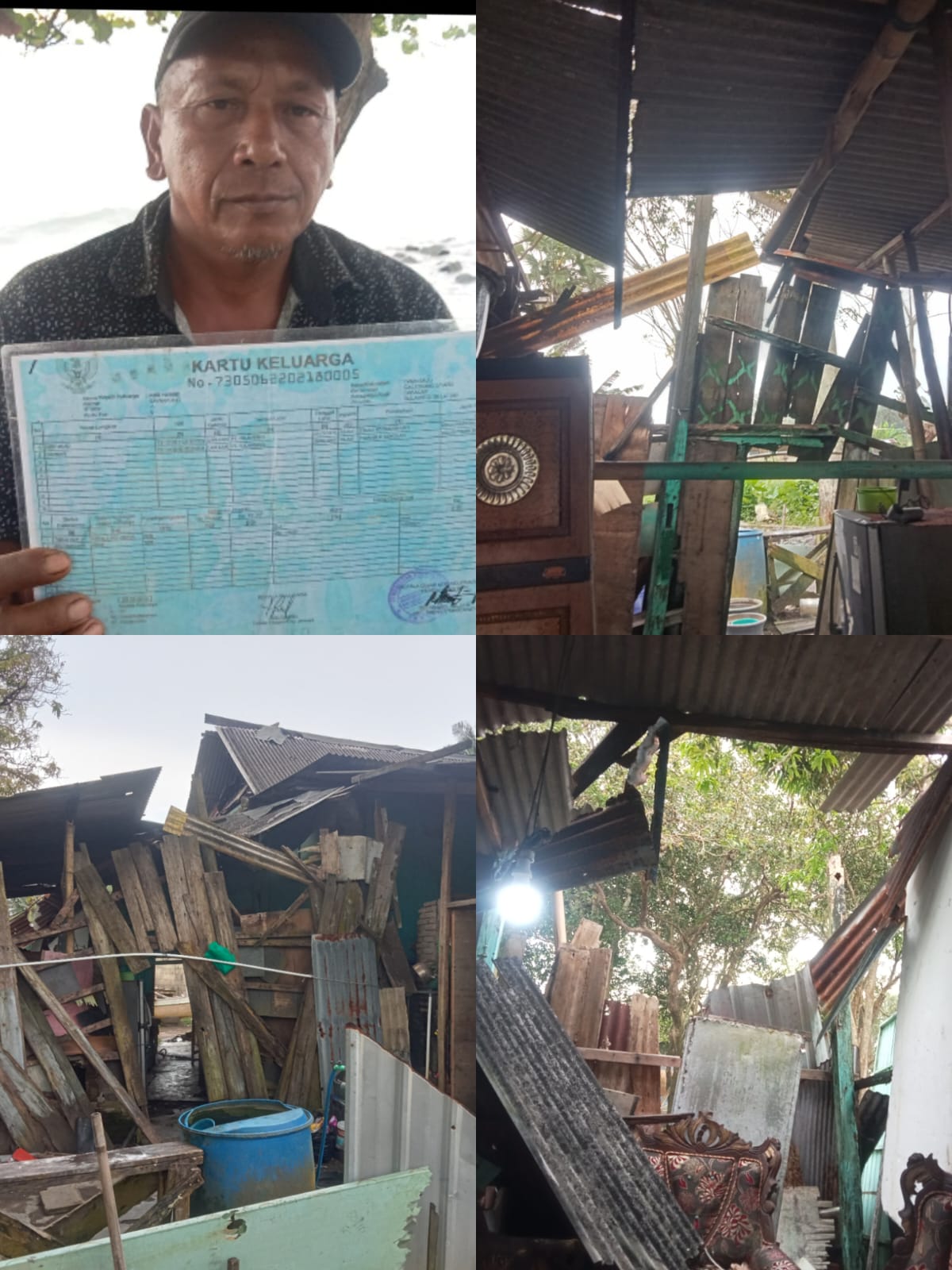 Lebih tragis lagi, pemilik rumah, Hamid, seorang nelayan tradisional, terpaksa membangun tempat darurat di samping rumahnya untuk berteduh bersama istri dan anak-anaknya.