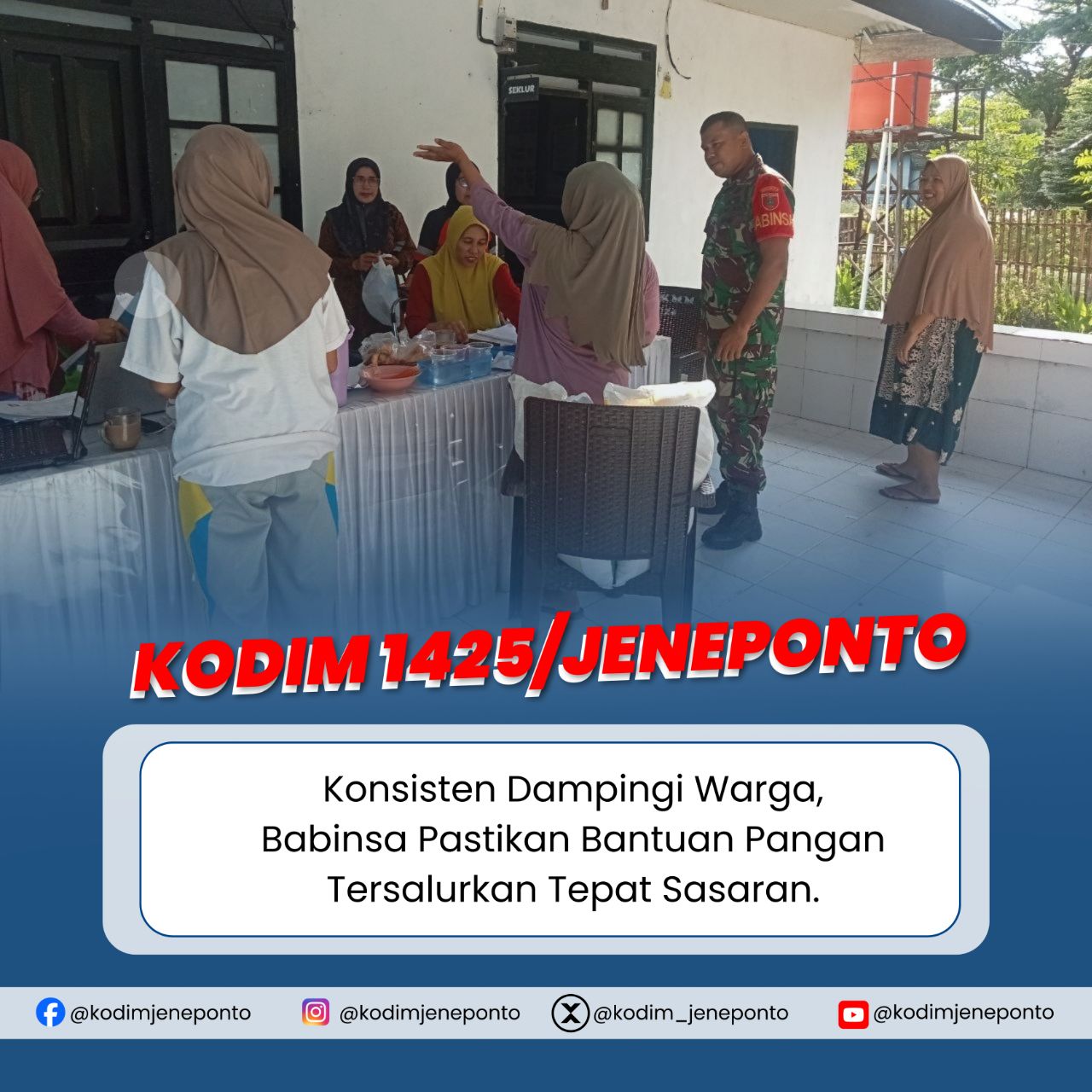Jeneponto, Aliefmedia.co.id – Babinsa Koramil 01/Binamu Kodim 1425/Jeneponto, Serda Supriadi, kembali melaksanakan pendampingan dan pemantauan penyaluran Program Penerima Bantuan Pangan (PBP) kepada masyarakat binaannya. Kegiatan ini berlangsung di Kantor Kelurahan Monro-monro, Kecamatan Binamu, Kabupaten Jeneponto, Senin, 13/4/2026.