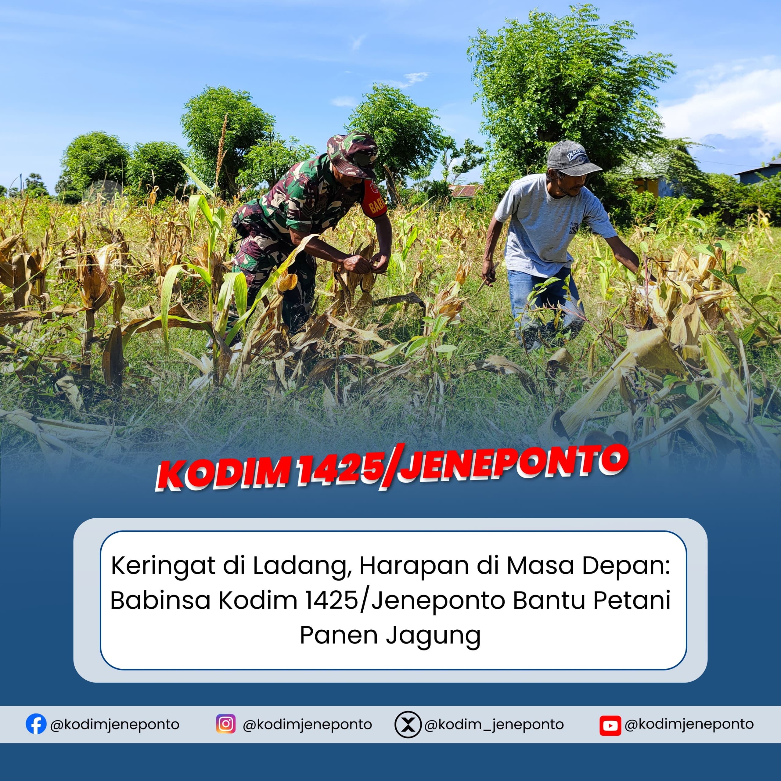Di bawah langit cerah dan hamparan tanaman jagung yang menguning, terlihat kekompakan antara aparat kewilayahan dan petani dalam mengolah hasil bumi sebagai sumber kehidupan.