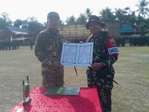 Upacara tersebut diawali dengan Laporan pelaksanaan Program TMMD dan penandatangan kerjasama dengan pemerintah daerah.