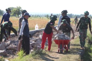 TNI, Polri dan warga bekerja bersama untuk mempercepat proses pembangunan agar jalan tersebut segera bisa dimanfaatkan. Kehadiran jalan tani ini nantinya akan mempermudah akses petani dalam beraktivitas serta memperlancar pengangkutan hasil pertanian.