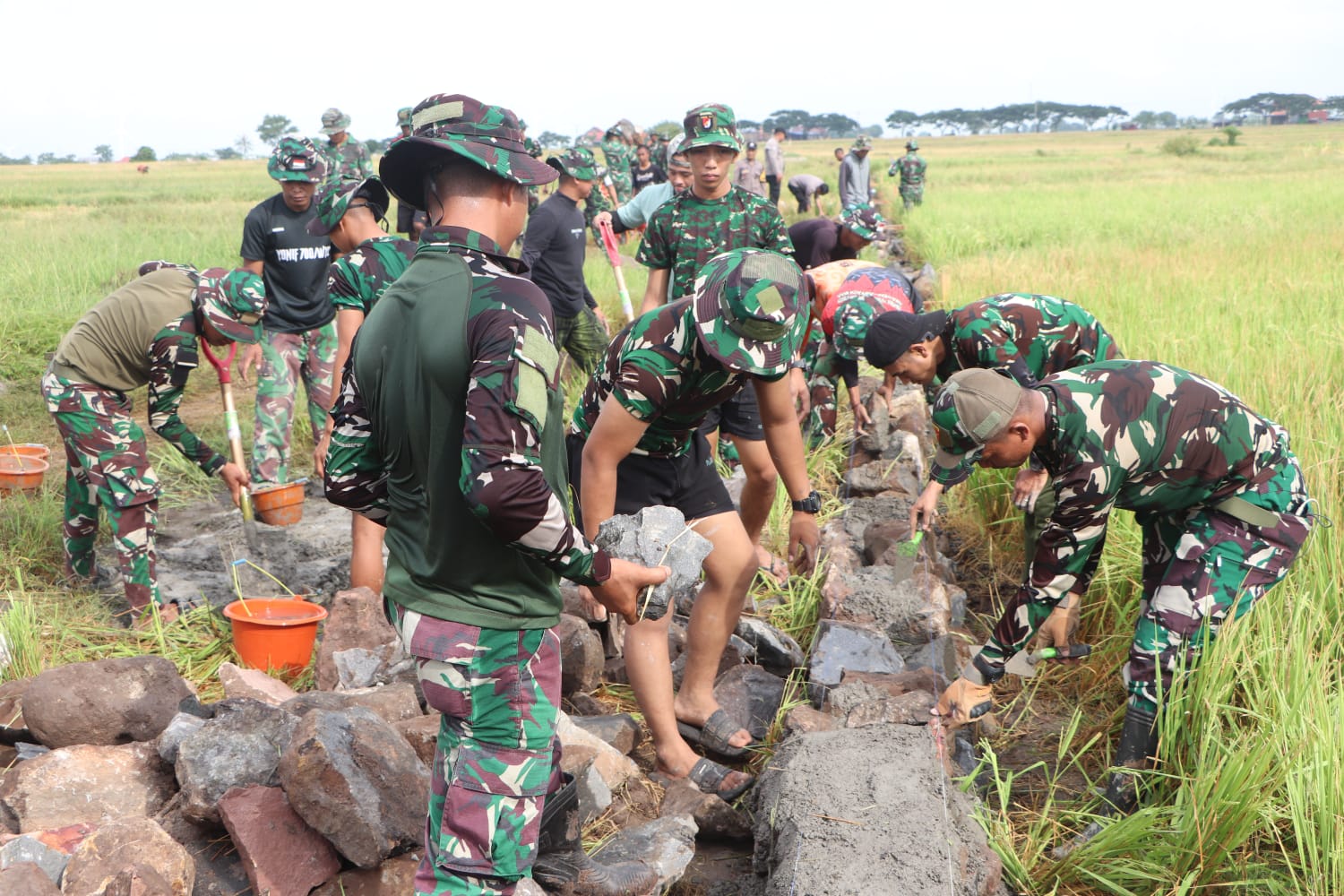 Tanpa jarak, TNI, Polri dan warga saling bahu-membahu menyelesaikan pekerjaan, menciptakan suasana kerja yang solid dan penuh rasa tanggung jawab.
